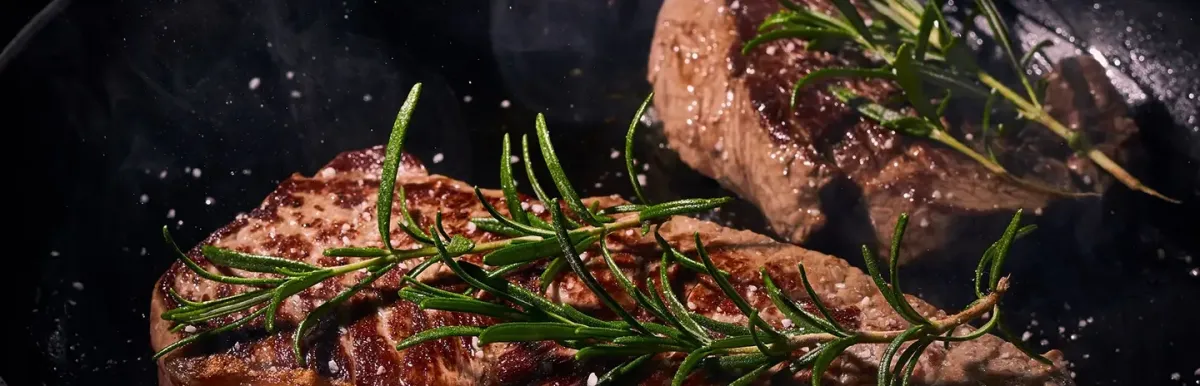 1 Lammkotelett, 1 Rumpsteak, 1 Lammspieß, goldbraune Ofenkartoffeln, Tzatziki